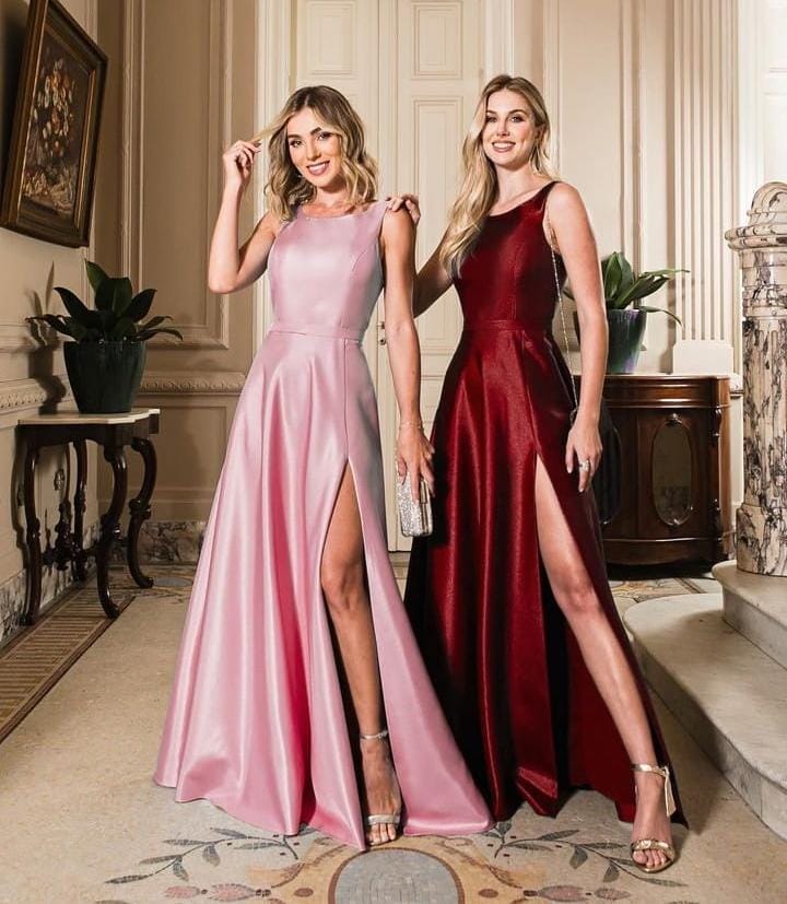 Vestido longo com fenda lateral e alça regata