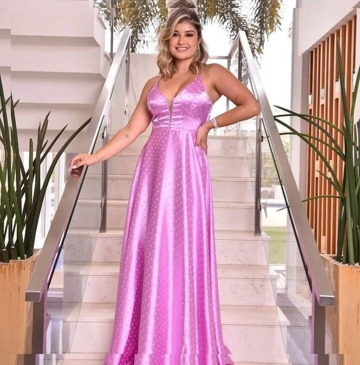 Vestido longo com detalhes em poá e alça